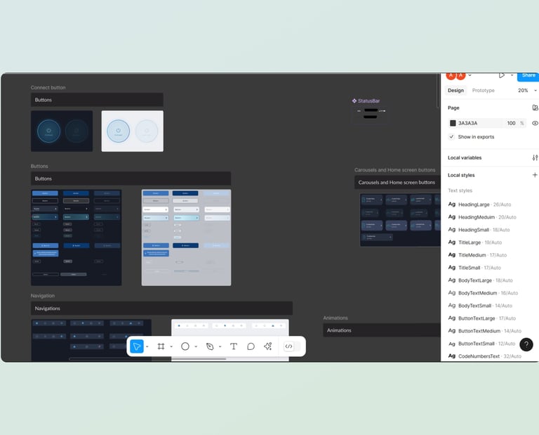 The main work was on big topics as: color tokens and semantic palettes, typography scale and responsive rules; spacing, grid, and layout principles; iconography and illustration guidelines; interaction and motion principles, component library creation with usage guidelines and developer-ready specification; accessibility requirements and maintaining; documentation and governance.
